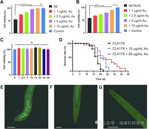 在AD模型秀丽隐杆线虫(CL4176)中,AuCRHA1表现出显著的体内抗AD效果: