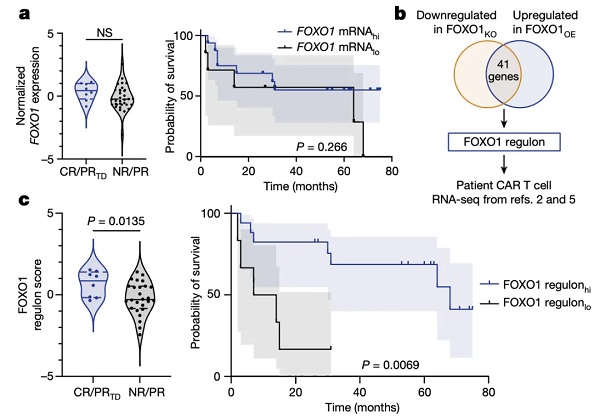 该研究证明,转录因子FOXO1负责促进人类CAR-T细胞的记忆,并抑制其耗竭,从而增强其抗肿瘤活性。该研究还发现,FOXO1活性与接受CAR-T细胞或肿瘤浸润淋巴细胞(TIL)治疗的患者的积极临床结果相关。