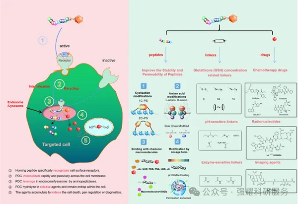 PDC药物除了靶向细胞表面的一些靶标外,对多肽进行修饰后具有更好的细胞膜穿透能力,与细胞内的靶点进行结合,不局限于结合位点一定是在细胞膜外。