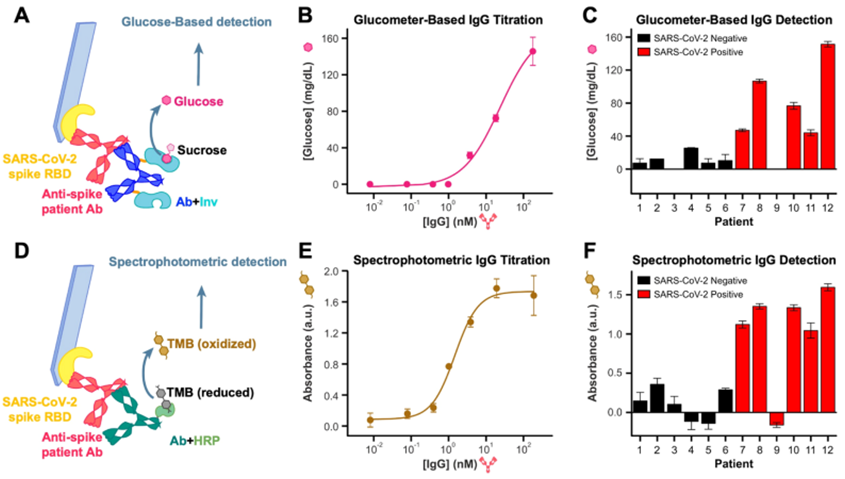 Through this response, the blood glucose meter can detect SARS-CoV-2 antibodies in patient samples, image from Journal of the American Chemical Society, 2022, doi:10.1021/jacs.2c02537.