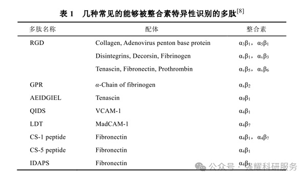 如含精氨酸-甘氨酸-天冬氨酸(RGD)序列的多肽,可特异性识别整合素αvβ3受体,广泛应用于肿瘤靶向治疗。
