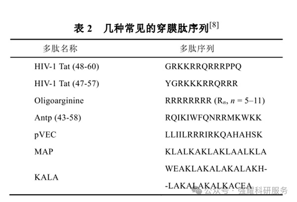 如HIV-1 Tat多肽,能直接携带活性物质穿透细胞膜,提高药物的细胞内吞效率。