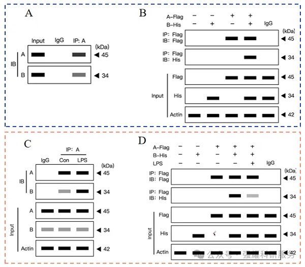 为验证内源性Protein A与Protein B的相互作用,CO-IP实验严格设置对照(图2):