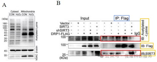 3. 文献案例发表在《Advanced Science》, 题为“SIRT3-Mediated Deacetylation of DRP1 K711 Prevents Mitochondrial Dysfunction in Parkinson's Disease”,作者通过系统性CO-IP验证了SIRT3与DRP1蛋白之间存在相互作用(图4)。