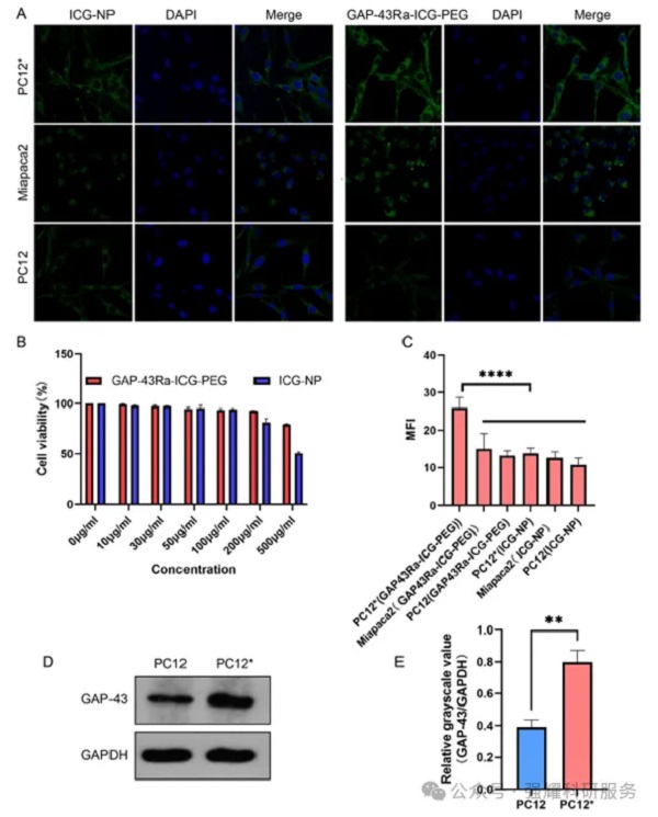研究团队合成并表征了GAP-43Ra-ICG-PEG探针,然后验证探针的体外摄取。