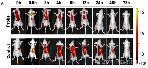 (1)建立坐骨神经浸润模型以进行体内验证。时间强度和TBR(肿瘤背景比)曲线表明在体内,PNI对探针的特异性摄取。