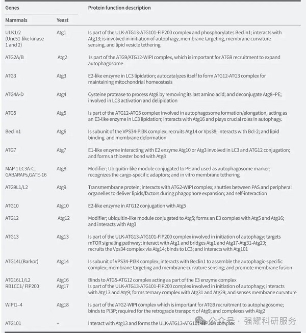 图4. 自噬相关基因及其在自噬中的蛋白质功能