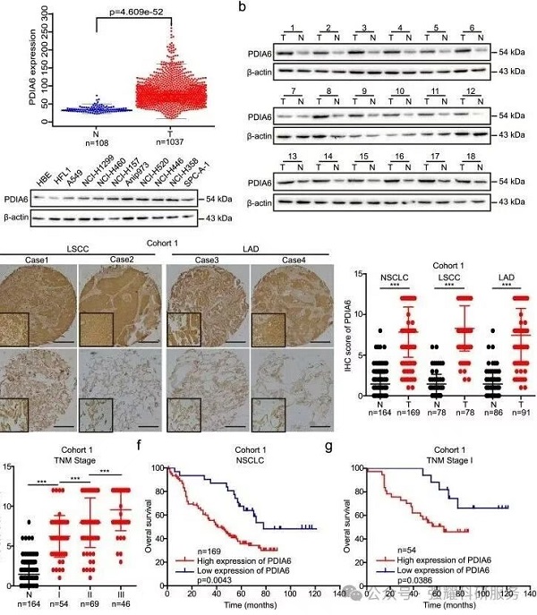 (1)通过qPCR检测,IHC检测,WB检测以及临床样本检测、存活率分析得知,PDIA6蛋白在NSCLC中表达升高,它会影响到NSCLC的发生。