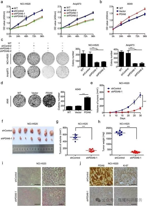 (2)对PDIA6进行干扰表达:通过CCK8实验,克隆形成实验,成瘤实验以及成瘤后IHC实验发现,干扰PDIA6表达后能够明显抑制肿瘤细胞增殖以及肿瘤的发生发生。