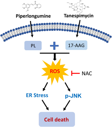 控制癌细胞中的ROS水平可能是杀死癌细胞的有效策略。给癌细胞注射HSP90抑制剂会削弱它们应对压力的能力,因此与其他ROS诱导剂联合使用有可能达到更好的治疗效果。10月13日,温州医科大学研究人员在国际期刊Cell Death Discovery上发表了相关研究,论文题目为:Combination therapy with HSP90 inhibitors and piperlongumine promotes ROS-mediated ER stress in colon cancer cells。研究发现HSP90抑制剂与荜茇酰胺(PL)联合治疗在结肠癌细胞中表现出强烈的协同作用,并通过促进内质网(ER)应激、JNK激活和DNA损伤发挥协同作用,这个过程是由活性氧积累引起的氧化应激推动的。