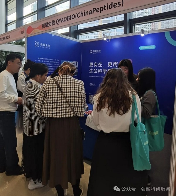 强耀生物在现场设置展位,吸引了大批学生及老师等相关专业人士前来交流,共同探讨多肽合成、蛋白表达、抗体制备及相关衍生领域的技术问题。