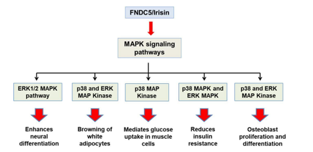 FNDC5/鸢尾素通过MAPK信号通路的生理作用示意图,doi: 10.3390/molecules27031118