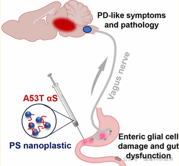 近年来,随着环境污染问题的日益严重,微塑料和纳米塑料对人类健康的潜在威胁引起了广泛关注。一篇最新的研究探讨了聚苯乙烯纳米塑料(PS nanoplastics)通过肠-脑轴加剧帕金森病(Parkinson's Disease, PD)病理机制的影响。研究表明,这些纳米塑料不仅能够加速A53T α-突触核蛋白(αS)的淀粉样聚集,还能引发一系列细胞毒性反应,并改变与PD病理生理相关的细胞代谢物谱型。