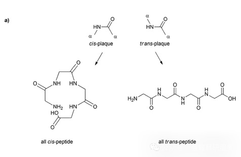 在环肽合成前,需对环进行剖析以进行逆向合成分析,确定线性前体在溶液中的构象。