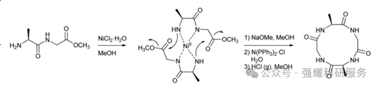 模板金属环化基于二肽酯与金属形成复合物,利用金属复合物将二肽酯中的活性N端和C端置于接近的空间位置,从而促进环状结构的形成。