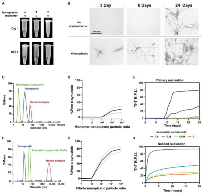 图二:阴离子纳米塑料结合α-突触核蛋白,加速α-突触蛋白聚集[1]