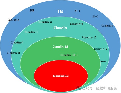 CLDN是TJ蛋白家族,参与调节上皮层的通透性、屏障功能和极性。Claudin18.2(CLDN18.2)是CLDN中研究最多的。因为与其他组织或癌症相比,它在胃和GC组织中特异性表达,这使其成为潜在的治疗靶点。
