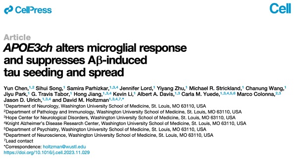 2023年12月11日,圣路易斯华盛顿大学的研究人员在 Cell 期刊发表了题为:APOE3ch alters microglial response and suppresses Aβ-induced tau seeding and spread 的研究论文。