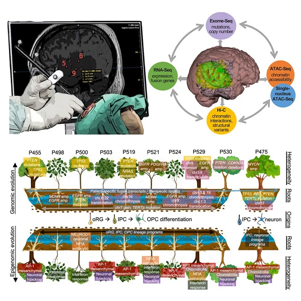 该研究采用了基因组学和表观基因组学测序方法对胶质母细胞瘤(GBM)组织和单个细胞进行了详细的研究, 首次为胶质母细胞瘤提供了全肿瘤视角,并且在三维空间中重新定义了胶质母细胞瘤的肿瘤异质性,揭示了其最早的起源和演化。