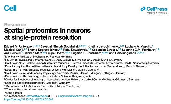 2024年3月28日,德国马克斯普朗克生物化学研究所的研究人员在 Cell 期刊发表了题为:Spatial proteomics in neurons at single-protein resolution 的研究论文。