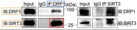 如图4所示,与IgG同型对照相比,Anti-DRP1抗体免疫沉淀组中检测到的SIRT3蛋白信号强度显著增强。这一结果初步提示DRP1可能与SIRT3存在相互作用。为保证实验结论可靠性,需做反向下拉,使用Anti-SIRT3抗体进行免疫沉淀,检测沉淀复合物中DRP1蛋白的存在,观察与IgG组相比是否有差别。只有当双向验证(DRP1→SIRT3和SIRT3→DRP1)均获得阳性结果时,且各对照组结果符合预期标准,方可得出"SIRT3与DRP1存在相互作用"的结论。